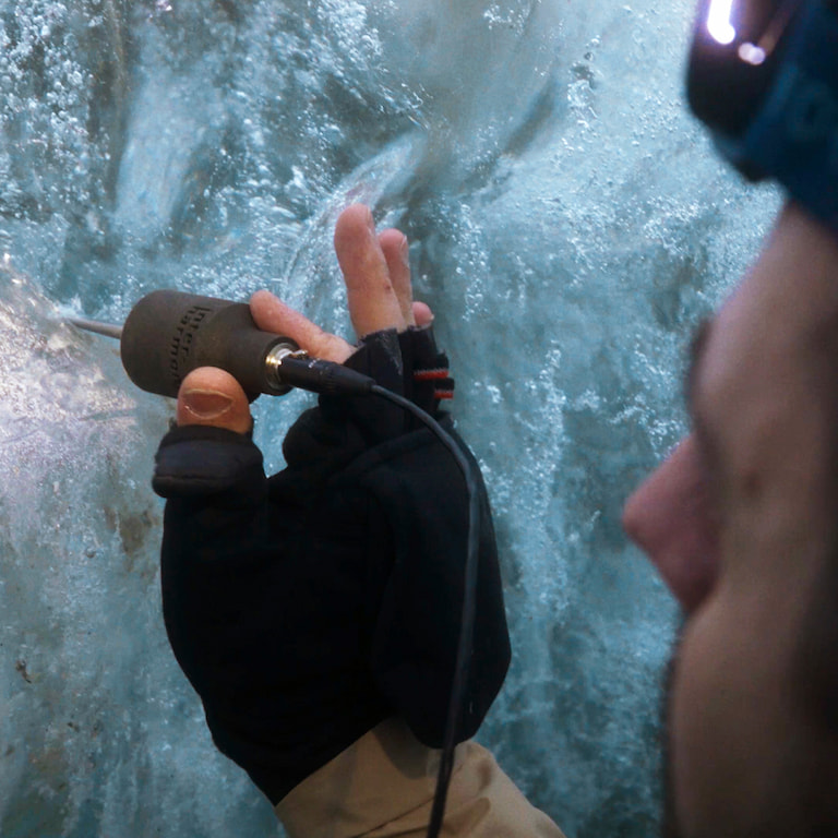 “Trovarsi dentro un ghiacciaio è come essere all’interno di una macchina del tempo. Puoi vedere migliaia di bolle d’aria intrappolate nel ghiaccio e chiederti da quanto tempo siano lì.”